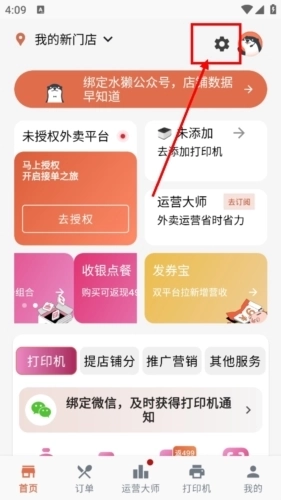 首先用户需要先登录,然后之前绑定好门店后,点击首页右上方的设置选项。