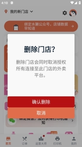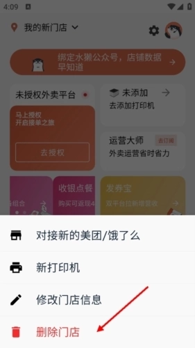 点开后会有四个功能,最下方的就是删除门店,点击删除门店。