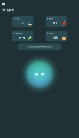 1、打开,在首页记录你的吸烟量,会展示出焦油量、累计支数、金钱等。