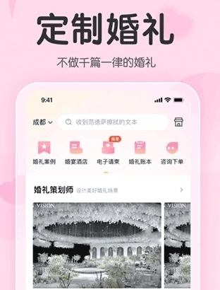 专业的婚礼管家全程一对一跟踪服务,为你提供结婚黄历吉日、预订酒店、拍婚纱照、订婚车、电子请柬、电子请帖、婚礼游戏、订购婚品等结婚筹备攻略的指导,形同您的贴心小秘书。