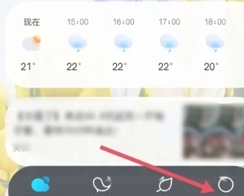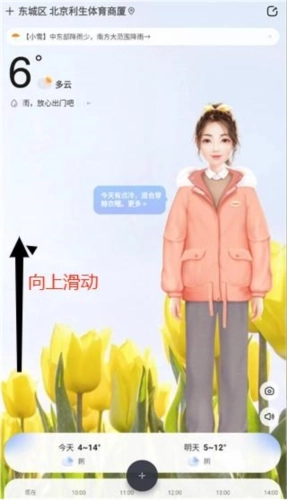 1、打开开心天气,打开手机定位可以看到当地的天气情况,向上滑动屏幕,如图