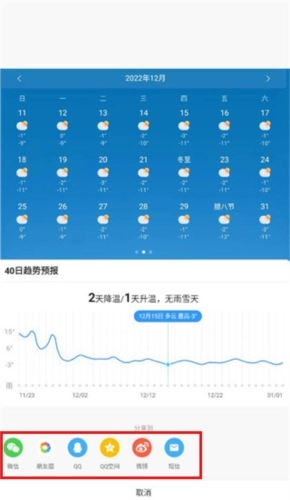 4、还可以把天气情况分享给朋友圈,非常的实用
