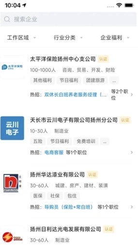 1、海量岗位展示:整合扬州各行业热门岗位,按类别、薪资、区域分类呈现,方便求职者快速检索。