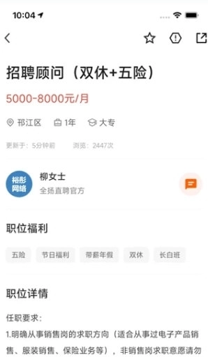 职位申请:用户可以直接在软件内申请感兴趣的职位。