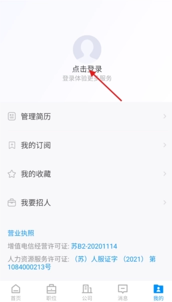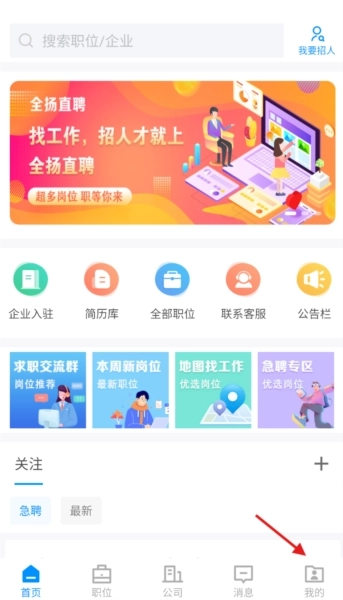 1、打开全扬直聘,在主界面下方找到“我的”选项,点击进入个人中心页面。