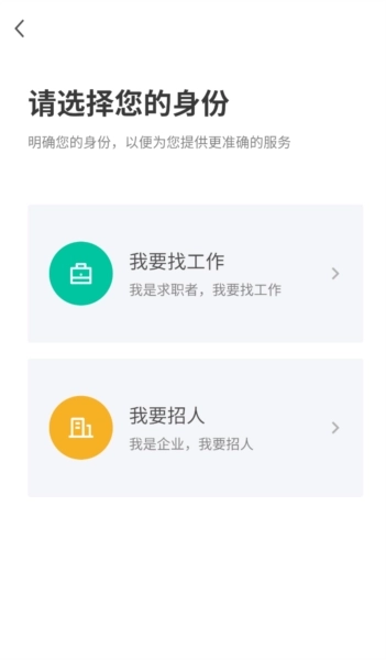 4、在注册页面,根据自身情况选择求职者或企业用户身份,明确注册使用方向。