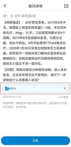 脑医汇增加患者答疑功能,数字化病历、病程轴管理、多中心讨论,碎片化时间解答患者疑问。