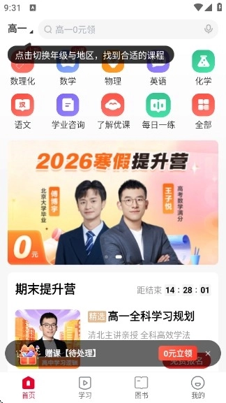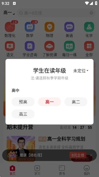 4、首页可进行学科学习,也可以进行学业咨询。