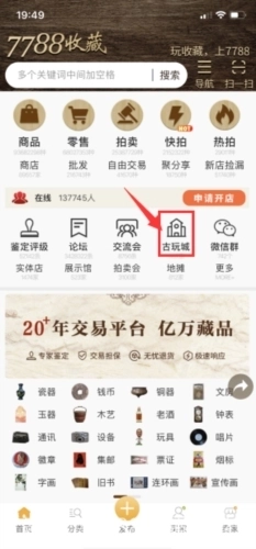 古玩城、交流会、论坛交流、专家鉴定等专业化版块;