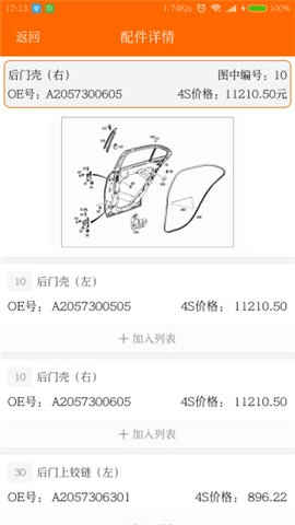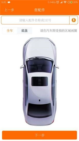应用提供在线寻找汽车配件功能,点击受损部位让应用推断所需配件;