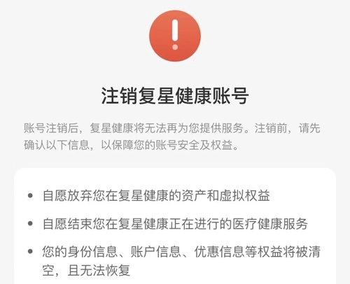 首先要打开复星健康手机版,接着在页面底部找到【我的】选项,随后点击右上角的【设置】图标进入设置界面,最后在设置页面的最下方就能看到【注销账号(注销后账号无法恢复,请谨慎操作)】的选项。