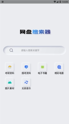 3.输入搜索资源的关键词并选择你想要搜索的网盘类型就能够进行对应搜索。