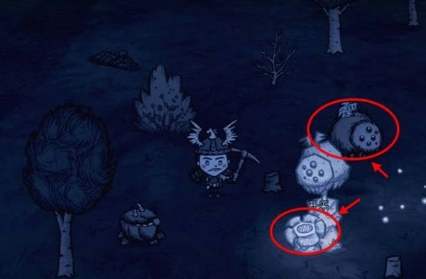 只要备齐足够的食物和燃料,怎么都能撑过去——这些物资得在秋天提前准备好。冬天正是出海象、刷狗牙、贝雷帽和行动手杖的好时候;冬季boss掉的眼球能做眼球伞,刚好用来应对春季的连绵阴雨。另外,冬末企鹅会留下一堆臭蛋,用来做火药炸地洞、炸怪物都很方便,对操作不太熟练的玩家来说简直是福音。