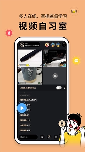 【线上自习室】:这款线上自习室适用于各教育阶段人群,具备高清画质,支持在线学习,还能自定义专属自习空间,设有计时自习室功能,营造图书馆般的学习氛围,助力培养自律好习惯。