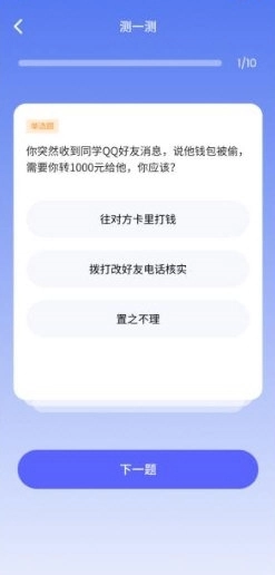 2、用户可以一键检测自己的被骗风险,更便捷地进行风险测试。