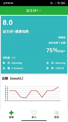 1、血糖管理:用户能够查看家人的实时血糖数值以及历史血糖记录;