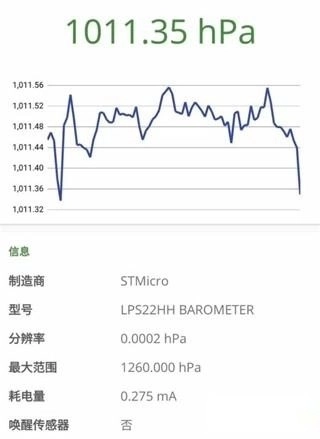 2、接着点击压力传感器,这里所说的压力传感器其实就是气压计,通常在正常情况下会呈现如下状态(数值可能存在差异)。