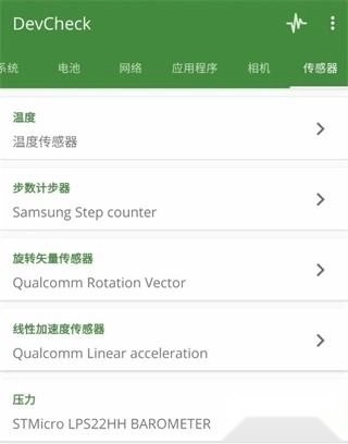 1、首先我们打开DevCheck,向右滑动页面,找到传感器界面。