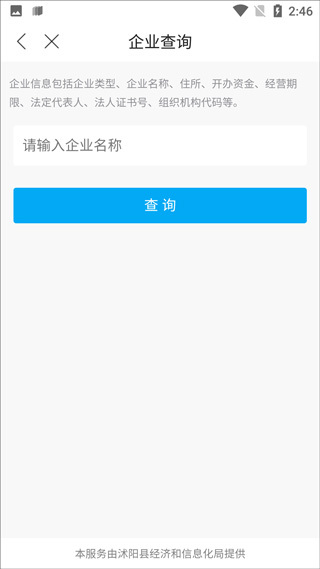 3、进入企业查询界面,输入企业名称,点击【查询】选项。