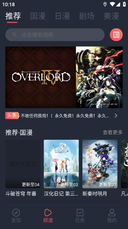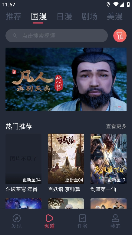 切换到“国漫”板块,滑动就能挑选喜欢的动漫,这里还包含日漫、美漫等资源。