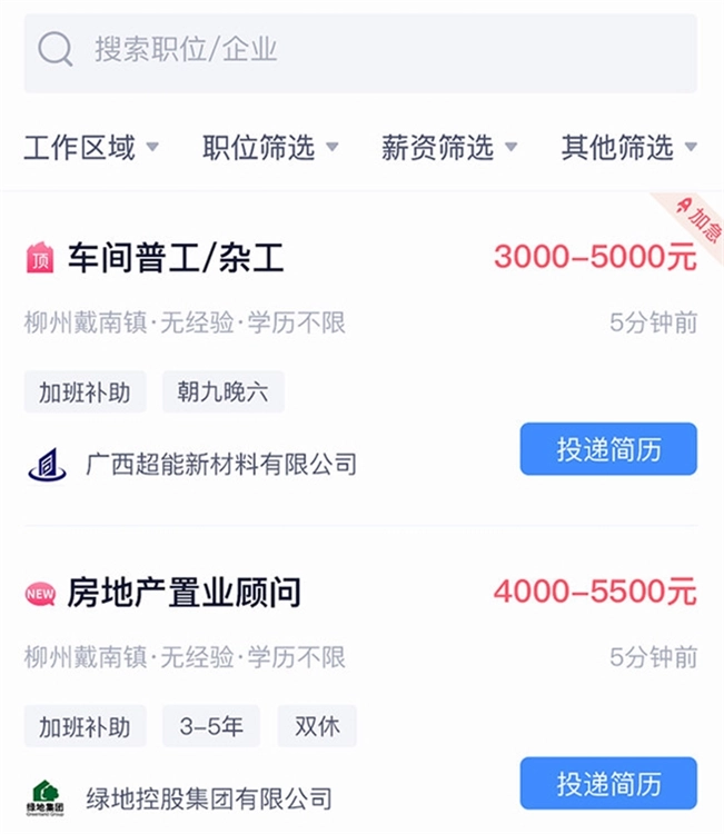 当日面试专区:每日更新可当天面试的岗位,适合急需就业的用户。