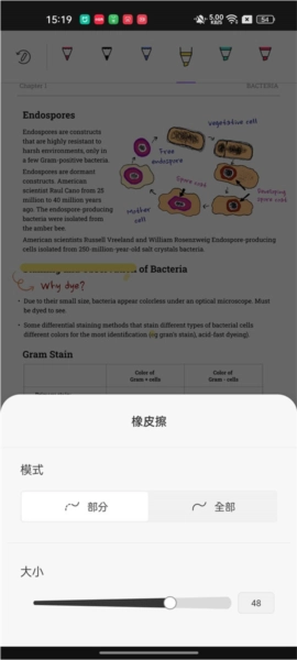 2、长按“橡皮擦”图标,能够调整橡皮擦的模式与大小。