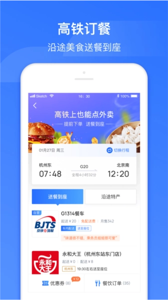 【高铁订餐】:轻松搜罗高铁沿线车站的各类美食,尽情品味舌尖上的美好滋味。