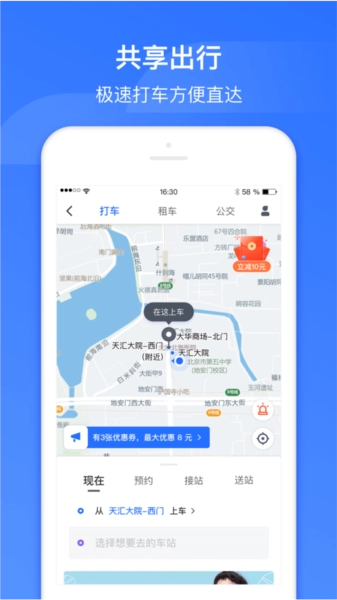 1、此外还有极速福利、全民狂欢等活动,用户可以参与疯抢打车券,享受天天领取、天天使用的福利。
