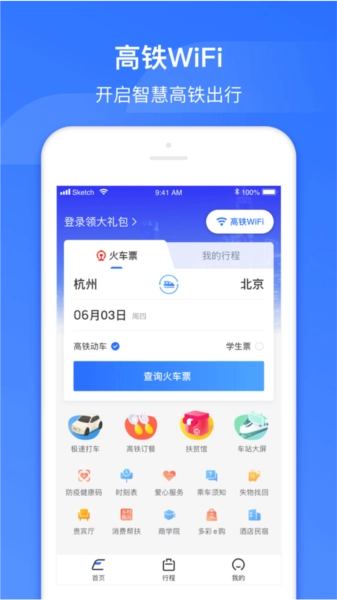 国铁吉讯是中国铁路推出的一款为铁路旅客提供线上线下协同出行服务的手机应用,涵盖了从火车票购买到行程中的电子客票、订餐到座等旅行服务,还包含极速打车这类特色联程出行服务,能让旅客在这里享受一站式服务体验。软件的板块划分十分细致,为大家的出行带来了不少便利!可以说,国铁吉讯覆盖了旅客从购票出发到吃、住、行、游、购、娱的全方面需求,让出行更安心、愉悦、便捷,有需要的朋友不妨来体验一下!