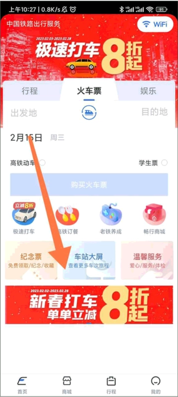 首先我们打开国铁吉讯应用,进入主界面后会发现,除了常规的火车票购买等服务外,平台还提供了不少便民功能。此时,我们只需点击界面上的“车站大屏”选项即可。