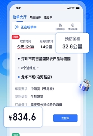 1、抢单:能够自由抢接各类高价订单,以此获得相应的运输收益