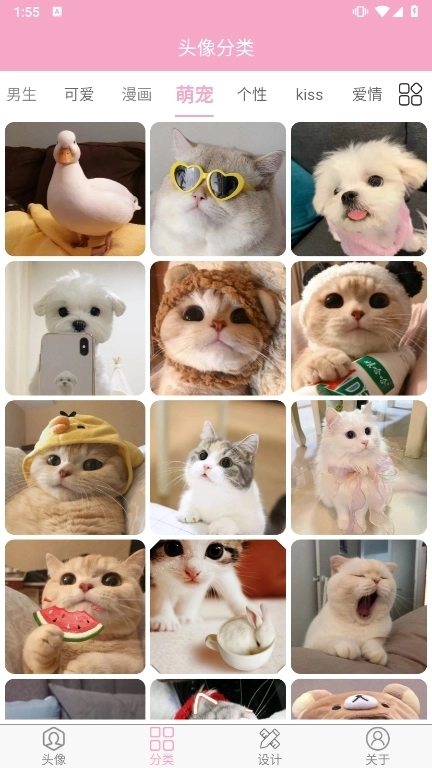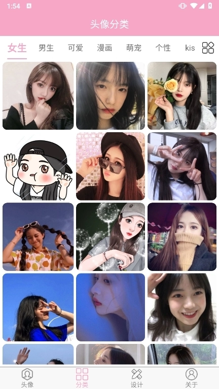 为用户精心挑选了数十种分类的头像,涵盖男生、女生、情侣、卡通等多种类型。