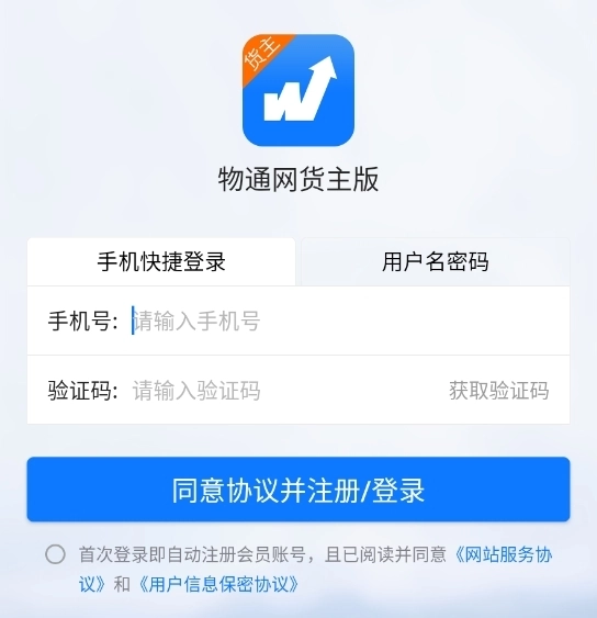 运行物通网货主版后,首先注册登录。