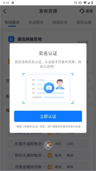 若用户类型为企业,则需完成企业货主认证流程,届时你要上传公司的营业执照。