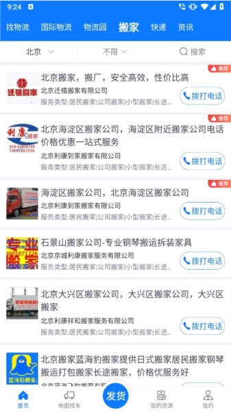 当然,物通网货主版也提供搬家服务,用户可以自行拨打电话联系心仪的搬家公司以获取服务。