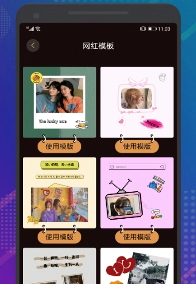 4、此外还能获取照片模板,用户点击就能运用不同模板对图片进行编辑;