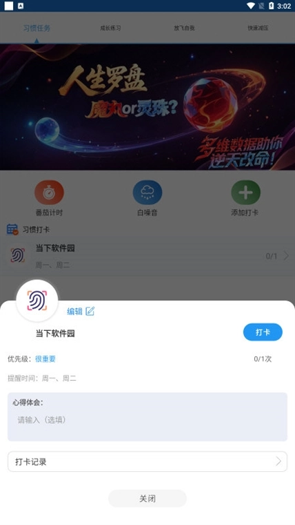 完成打卡操作时会触发清脆的音效和动态视觉效果,借助这些感官层面的刺激来强化正向反馈机制,从而进一步提升用户的成就感体验。