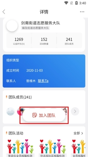 3、找到心仪的团队后点击进入其信息页面,选择加入选项,之后等待团队负责人审批通过即可。