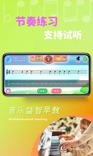 软件运用特效真实感强的交互训练形式,增强用户的学习趣味性,让用户在练习的过程里体验音乐创作的快乐。