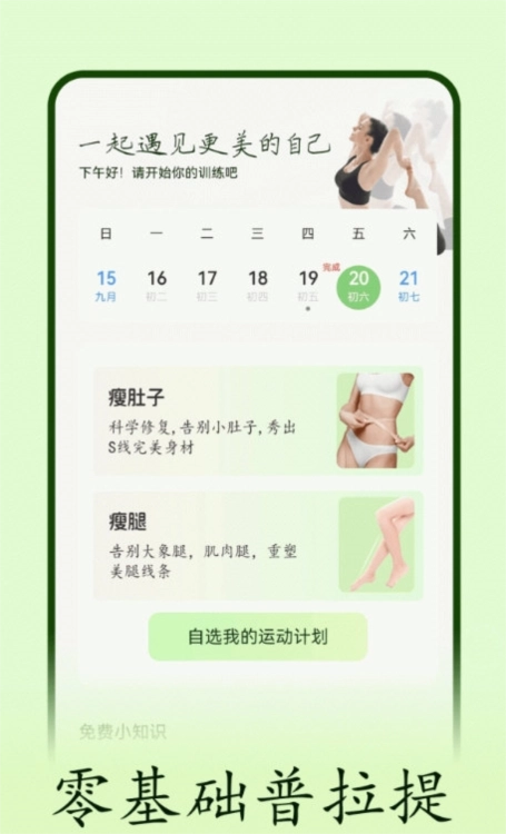 回到首页后,可从“今日推荐”或“计划日历”板块挑选课程。