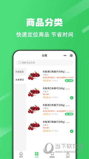 3、在首页对不同门店进行详细分类,涵盖厨房生鲜、商店超市、水果果切等类别;