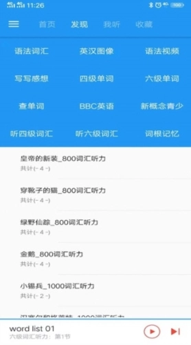 3、新概念英语咖具备数据收藏、数据缓存、播放历史记录等功能。