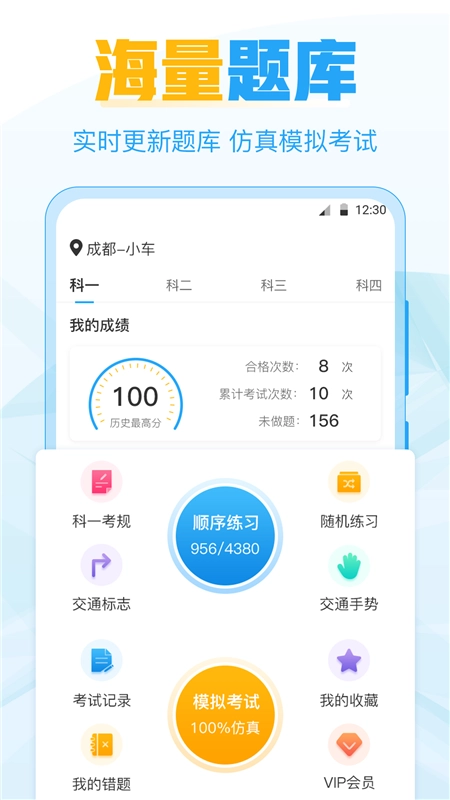 涵盖了科目一以及科目四的各种真题以及模拟试题,方便你掌握