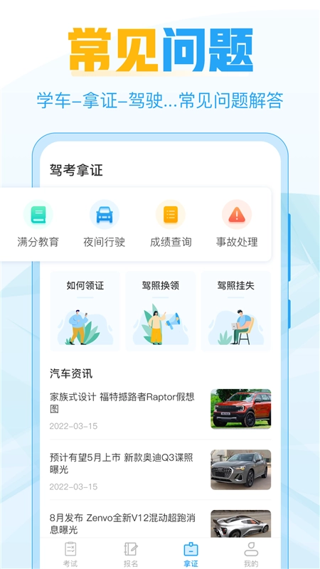 5、流程覆盖全面:从驾校理论模拟考试到科目一、科目二、科目三、科目四的全考驾照流程,一个驾照宝就能全部搞定