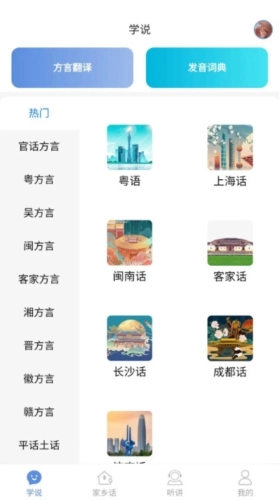 方言通是一款优质的方言学习软件,致力于帮助用户更轻松地学习方言。若您对某个地区的方言感兴趣,可在软件内进行学习,还能在当地借助它与他人沟通翻译。这款软件的所有功能均为免费,无需额外付费。这里提供了丰富的方言学习内容,能为广大用户带来良好的方言学习体验,您可以接触到全国各地的方言大全,随时随地跟读学习,感兴趣的朋友欢迎前来体验。