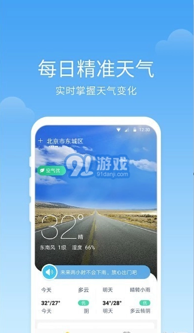 1.语音播报功能:具备语音播报天气信息的能力,即使用户在不便查看手机的情况下,也能迅速知晓天气情况。