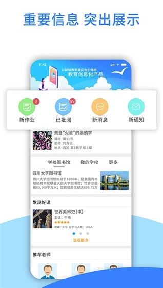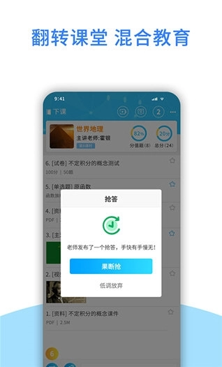 作为一款功能强大的在线教育工具,爱课堂融合版为教师配备了丰富实用的功能,方便他们利用闲暇时间批改学生作业、回顾课程视频、查看学习统计数据等。对学生来说,这款应用程序支持实时查阅教学资料、观看课程录像辅助复习,并且设有学生社区,能够促进学生间的交流互动,助力培养自主学习动力。此外,爱课堂融合版还提供多种类型的课堂测试,帮助教师更精准地评估学生学习进度,进一步提升教学质量。