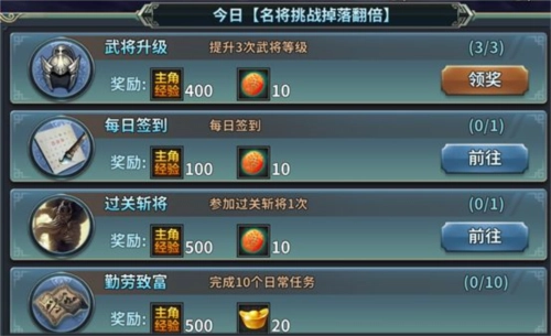 区服开服满第二天后,日常双倍活动便会开启。该活动共包含四种类型,按顺序依次为:扫荡经验双倍、桃树摇一摇双倍、名将挑战双倍、国战荣耀币双倍。新服第三天的双倍活动为扫荡双倍,第四天则是桃树摇一摇双倍(若第二天开启的是扫荡双倍活动,那么第三天的双倍活动就会是桃树摇一摇双倍)。后续将按照上述双倍任务的顺序循环轮换,每4天为一个周期。新区的主公们可以在开服前两天多储备一些粮草,等到第三天再进行扫荡操作,这样就能获取相对更多的经验啦。