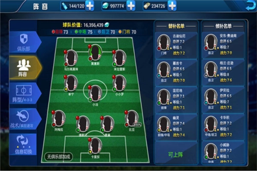 4、可自定义安排球队阵容中的球员位置,打造专属于你的特色战术风格
