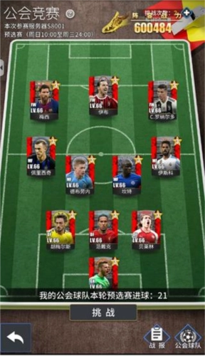 公会竞赛每个赛季会把4到5个服务器划分到同一个战区,整个赛季包含两个阶段。第一阶段是预选赛,时间设定在周日10点至周三24点。每个玩家都有一定的挑战次数,能够运用公会阵容去挑战传奇球队,并且将每场比赛的进球数累加起来计入排行榜。最终排行榜上前三名的队伍会晋级到争夺赛,而排名第4到第6名的队伍则会获得淘汰奖励。